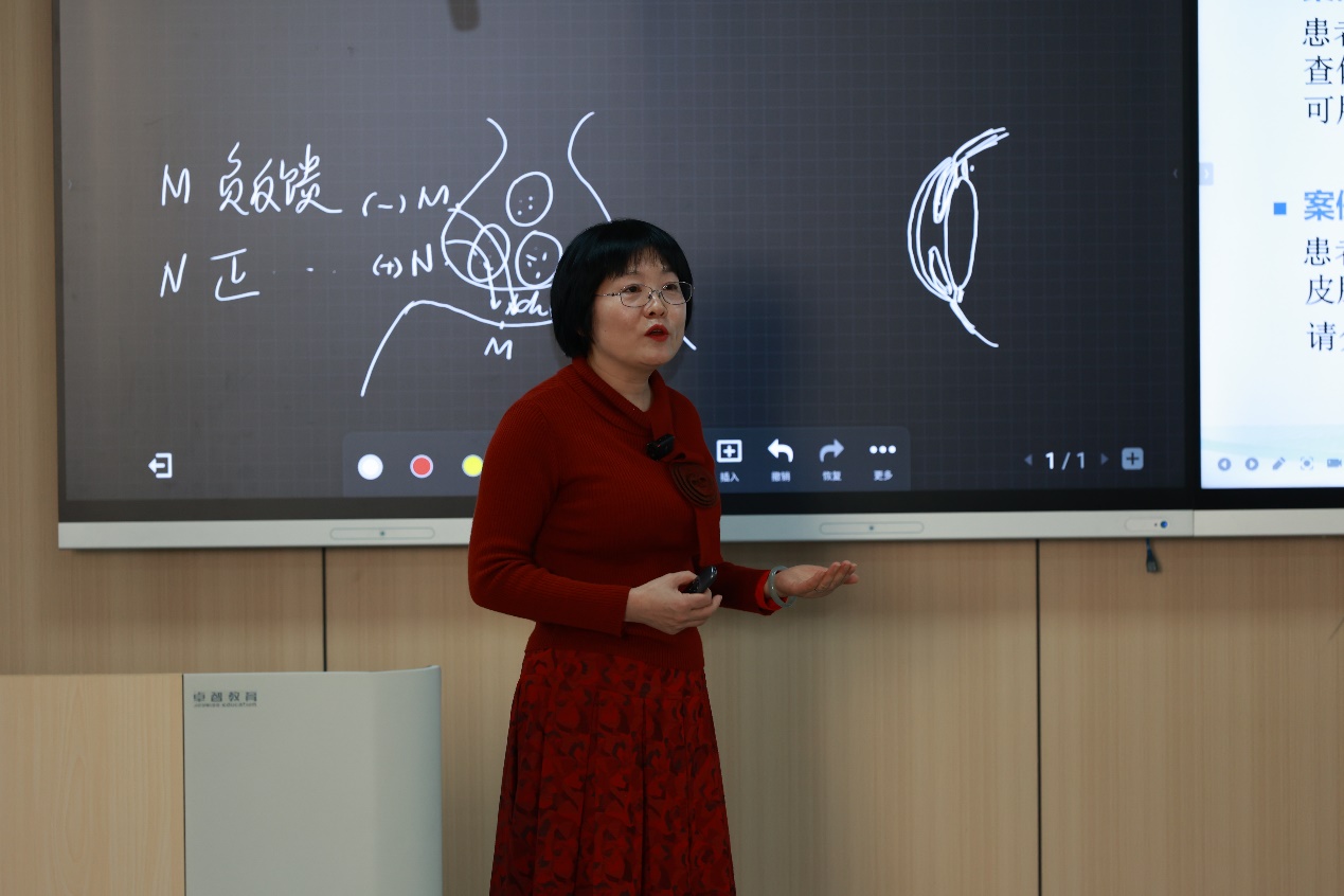 活动采取示范授课、交流互动与专家点评相结合的方式进行。药学院闵清教授、计科学院李歆副教授、外语学院卫丽副教授应邀进行教学示范。闵清教授是湖北省教学名师、湖北省“名师工作室”主持人,本次示范课程内容是《M受体阻断药——阿托品》。整堂课 “稳、巧、厚、融、育”,教学内容深入浅出,课堂讲授充满激情,课程思政润物无声。李歆副教授擅长线上线下混合式教学,曾两次获得学校教学创新设计大赛一等奖。本次示范课程内容是《人工智能——机器学习》。课堂讲授灵活运用知识图谱,突出教学新理念,并且深入挖掘人工智能作品中的中国元素,视听结合,富有感染力。卫丽副教授曾代表学校首次入围湖北省高校教师教学创新大赛并获三等奖,本次示范课程内容是《英语阅读——TheoldmanandtheseaChapter 5 Battle with the sharks》。课程教学设计脉络清晰,层层递进,采用全英授课,注重课程思政融入,课堂氛围轻松愉快,学生积极参与互动。
