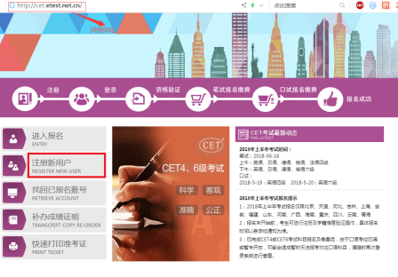 1.进入官网http://cet-bm.neea.edu.cn,点击“注册新用户”,进行注册。