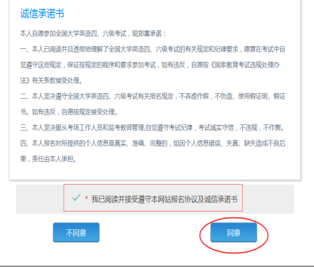 考生登录系统后,在页面填写《承诺书》、验证报名信息及资格。