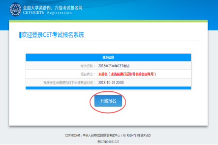 注意:本次四六级报名开始时间为:9月20日11:00,在此时间前考生只能进行报名信息确认,待报名开始后才能报名缴费。