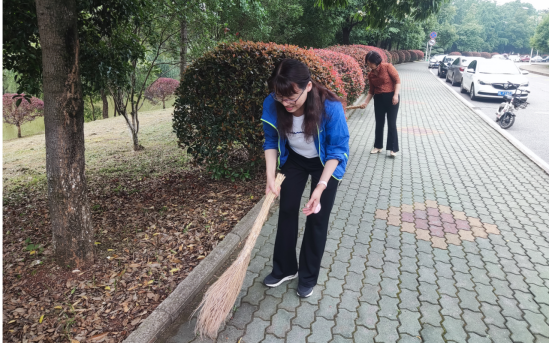 为响应咸宁市创建全国文明城市号召,根据学校机关党委统一部署,2022年5月27日,教务处开展创文清扫活动,整治校园环境卫生,创造宜居校园环境。清早,教务处全体人员在处长鲍翠玉同志带领下,在责任区内进行创文大清扫。活动中,大家发扬不怕脏、不怕累的精神,用扫帚、火钳等工具对责任区内道路、台阶、草坪、卫生死角等区域进行清理。